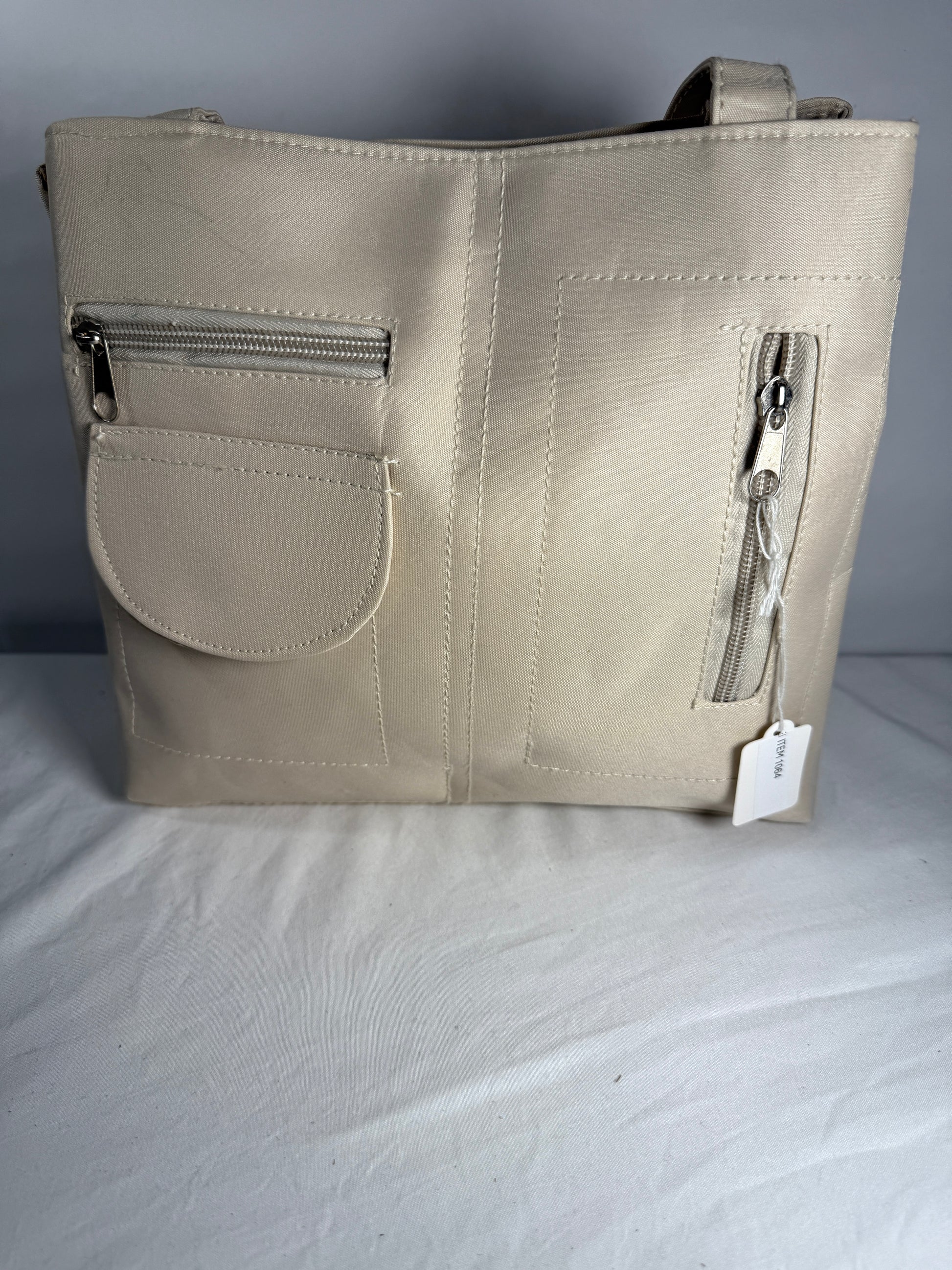 Pre-owned beige cargo style bag. 100% Polyester. Multi-Pocket Tote Bag