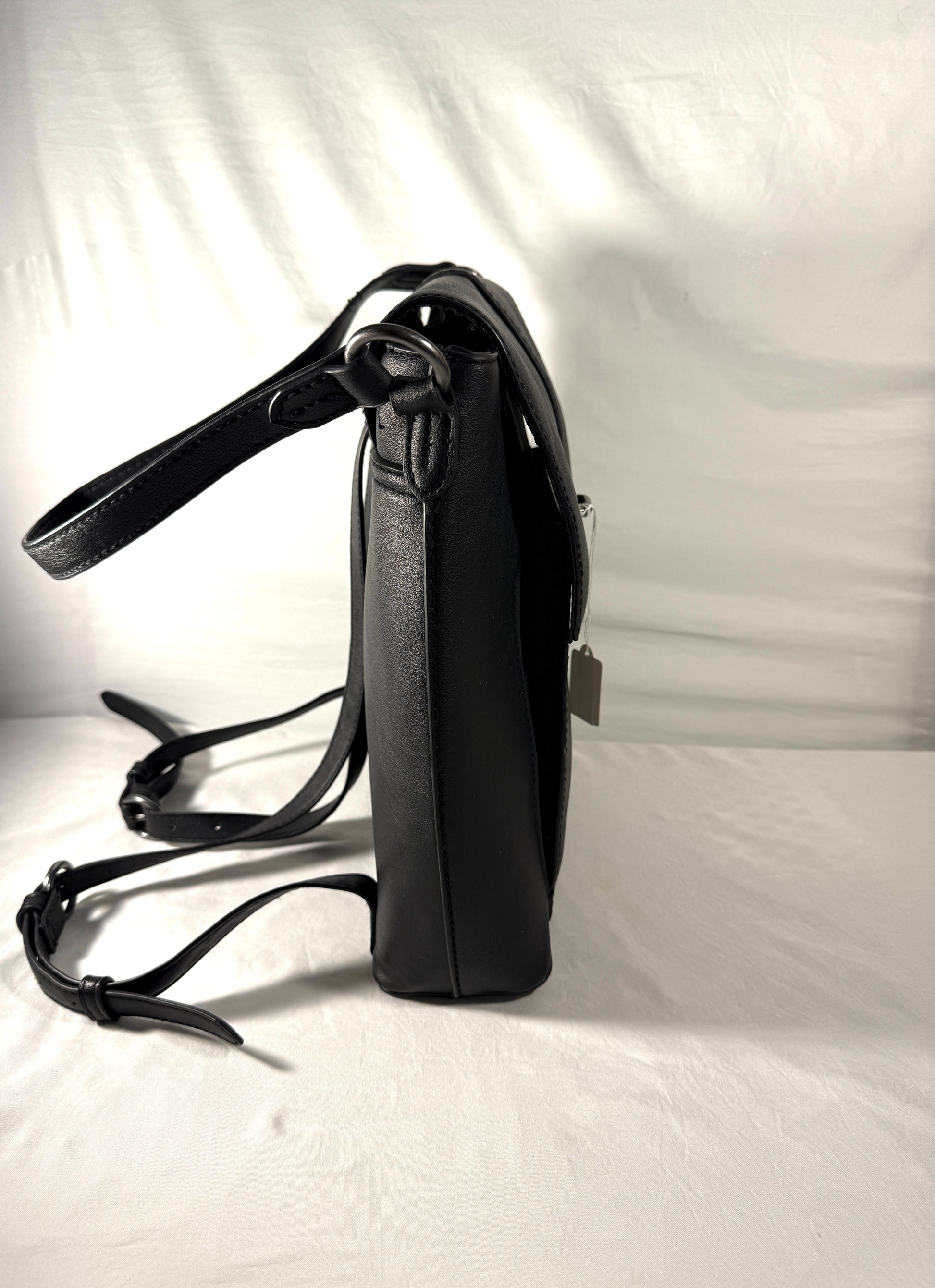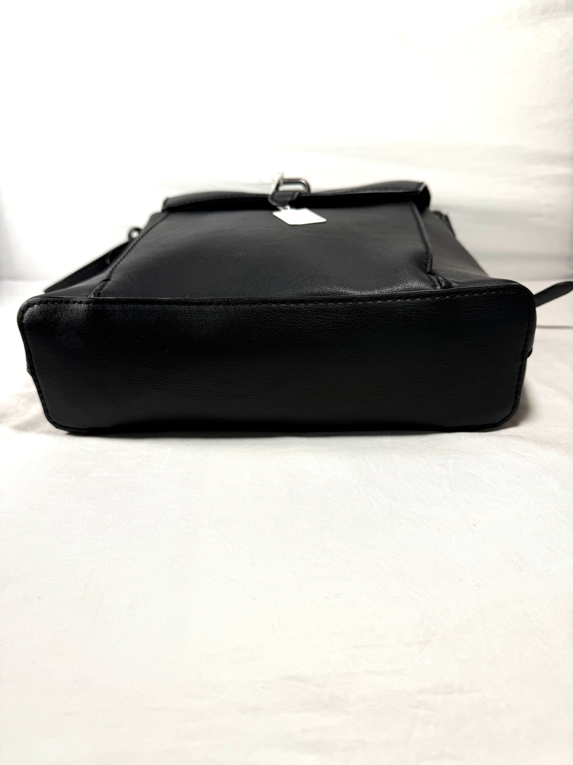 Black Jayden Backpack Purse w/adjustable straps. Vegan Leather. Front pocket. 2 Inner Pouches. Measurements: Height - 11.5in Width - 12.75in Depth- 3.75in