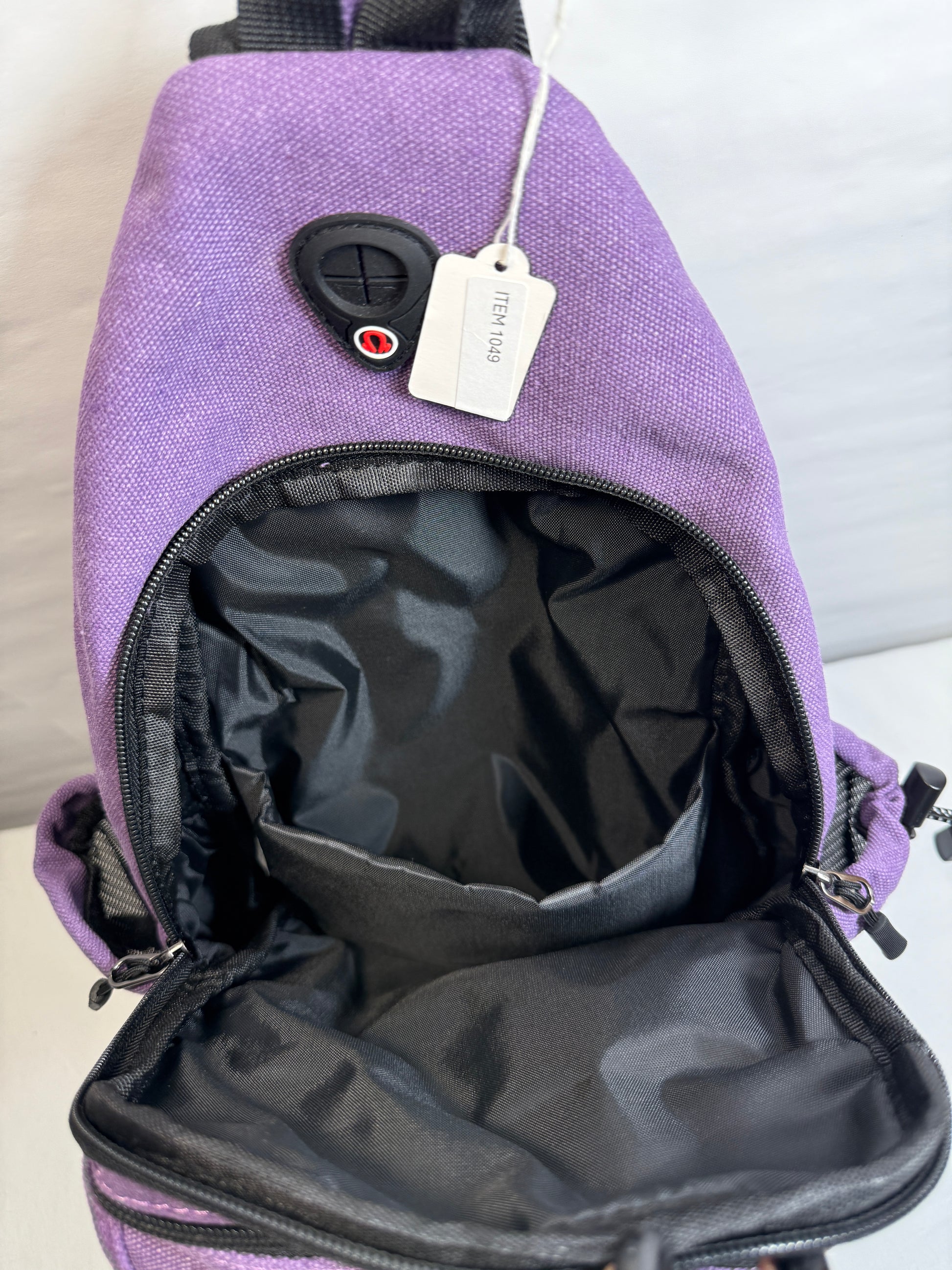 Sling Backpack Crossbody Shoulder Bag. Large zippered compartment w/two side pockets. Dimensions: 15.3 x 7.5 x 3.5 inches (L x W x H).