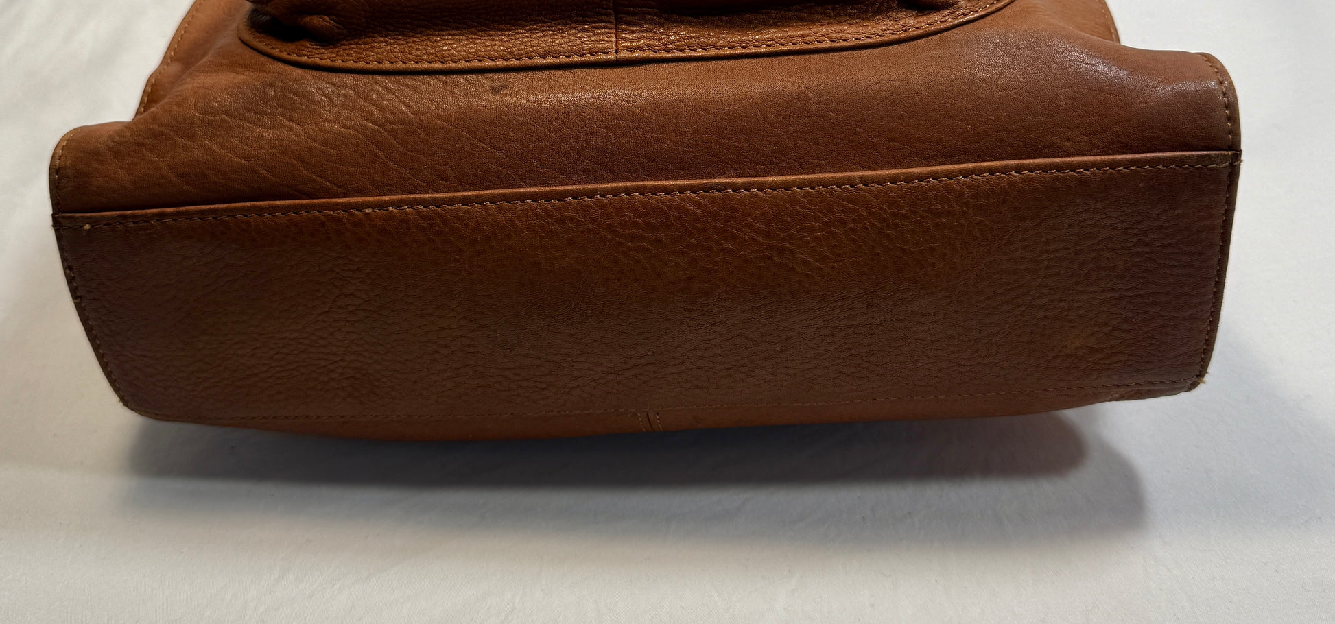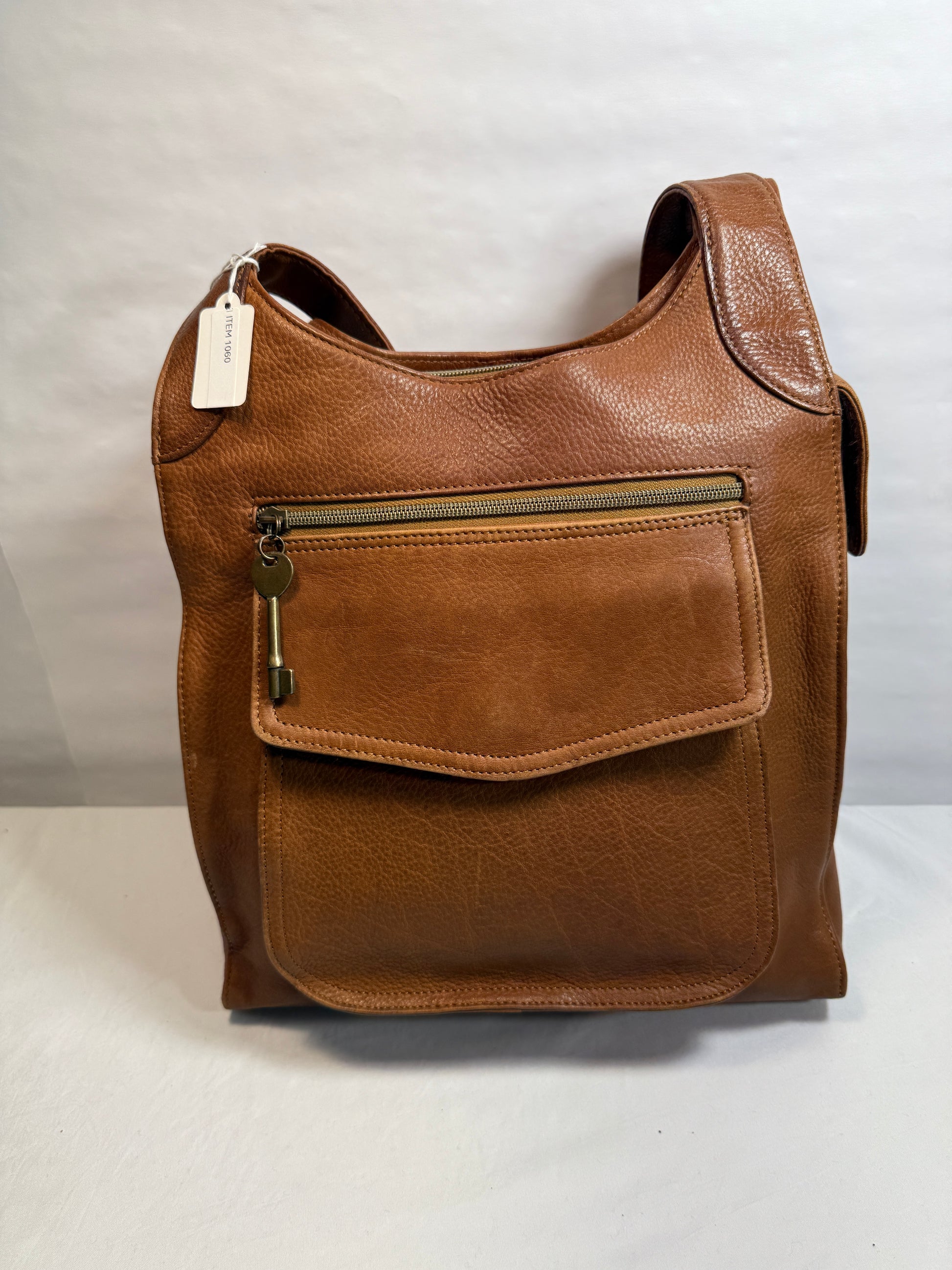 Fossil 1954 Brown Pebbled Distressed Leather Shoulder Bag Double Handles Purse 11 inches wide, 12 inches tall and 4 inches deep.
