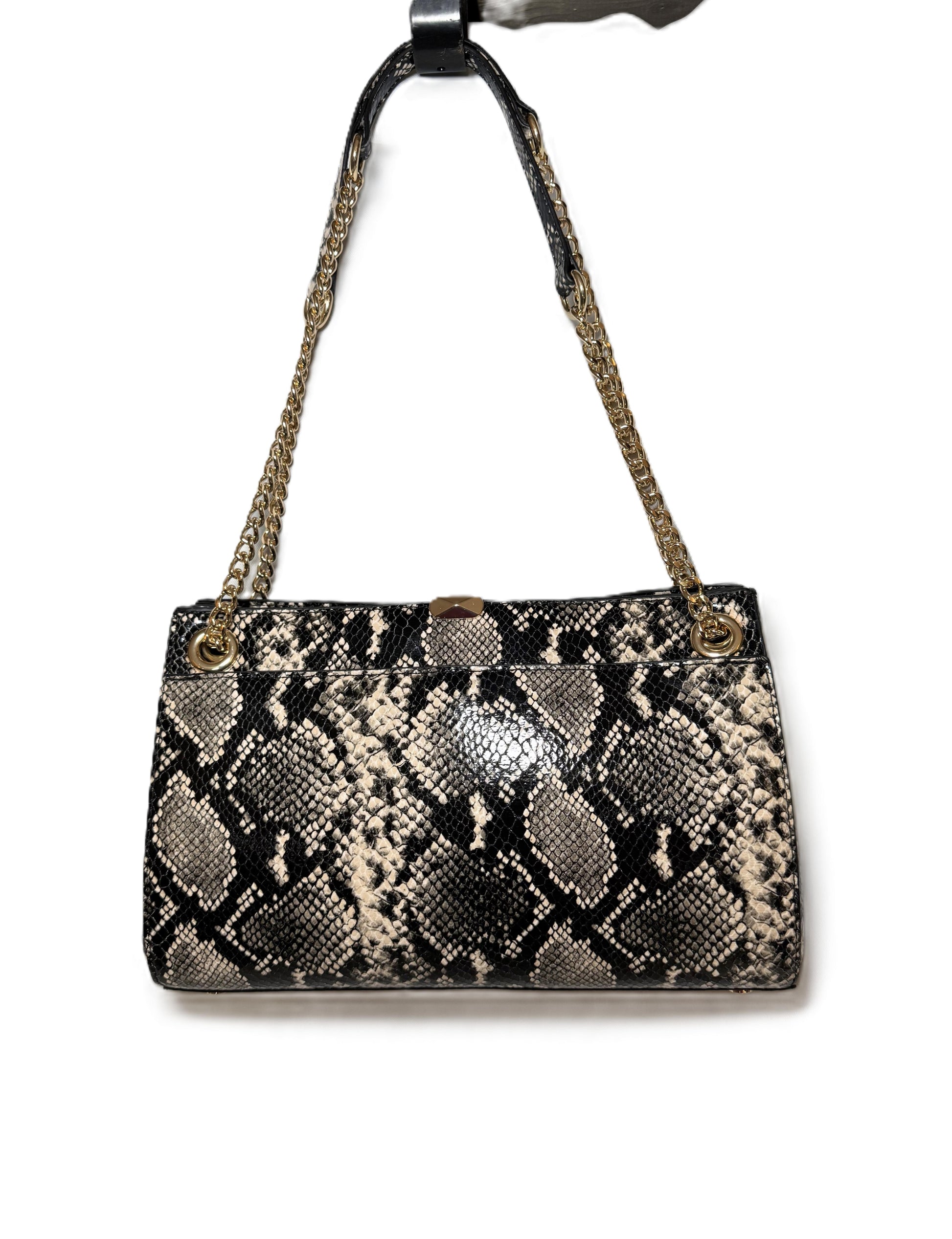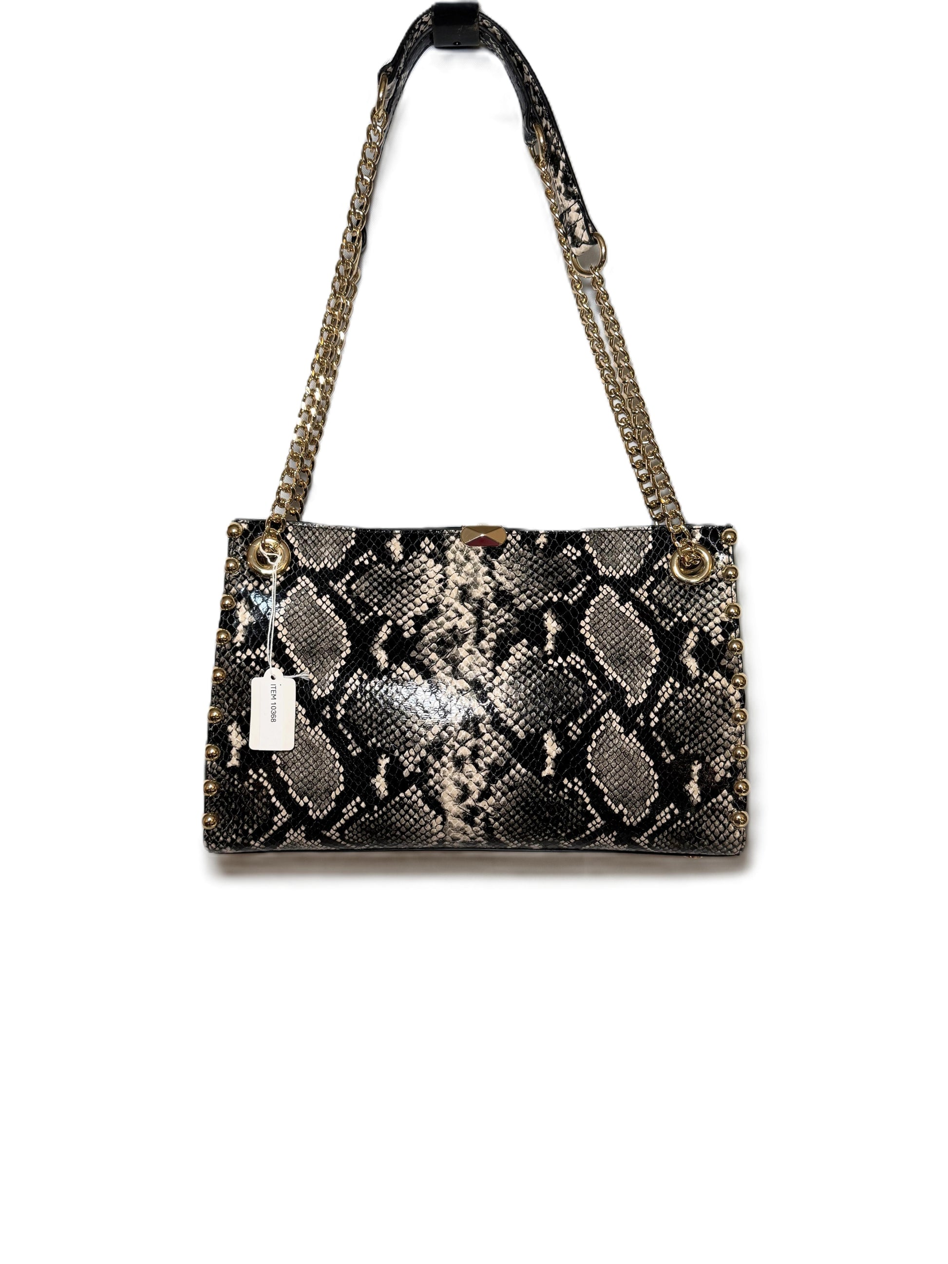 | Gray I.N.C. International Concepts Handbags. Harrper Studded Shoulder Bag. 12"W x 4" H x 7.5" D. Strap Drop: 20''; Double Handle Length:23.5''. Magnetic snap closure. Gold tone exterior hardware & interior. 2 main division pocket,1 main interior zipper pocket,1 interior zipper pocket,1phone pocket |