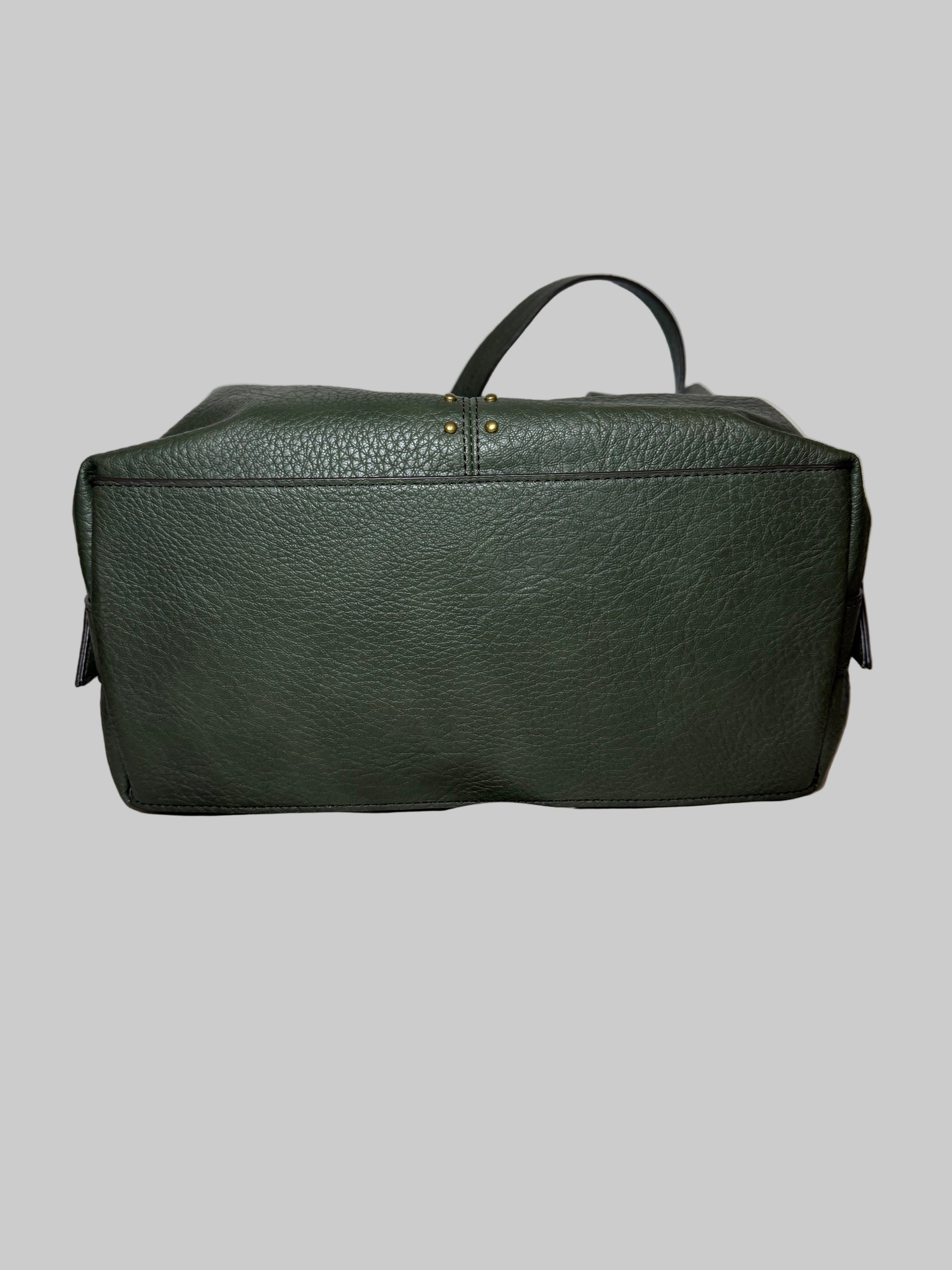 Green Satchel Tote/Shoulder Bag. Closure Type: Zipper. Pocket Types: 1 Back Zip Pocket(s), 3 Inside Slip Pocket(s), 1 Inside Zip Pocket(s). Metal Color: Bronze Tone. Measurements: 11.75 Height/Inches, 17.25 Width/Inches, 5.88 Depth/Inches. Max Strap Drop Length: 10 Inches. Base Material: 100% Faux Leather. Fabric Description: Faux Leather