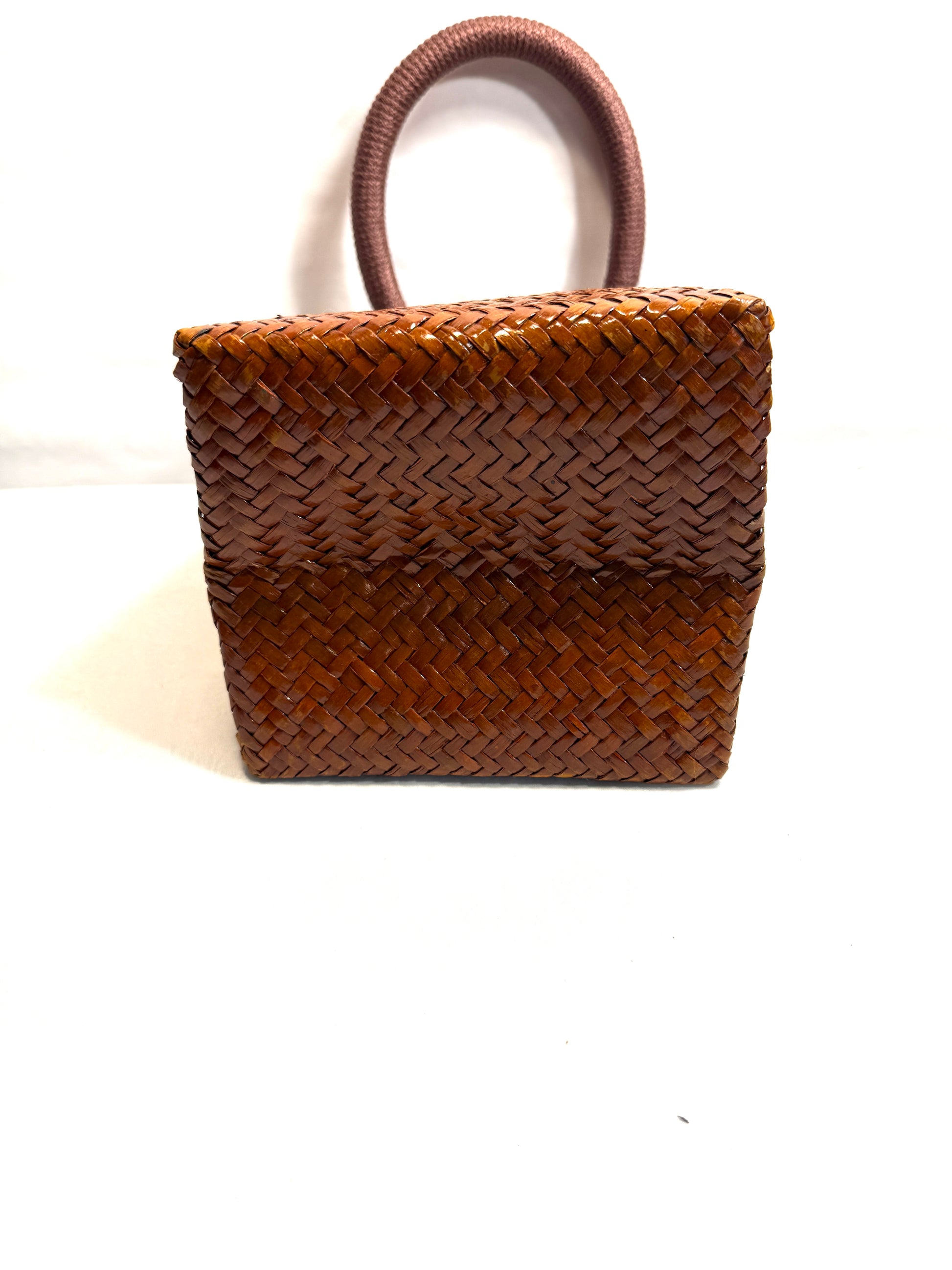 Hand-woven Mini Retro Elephant Pattern Straw Handbag. Approx. Dimensions: W 6" x H 7.5