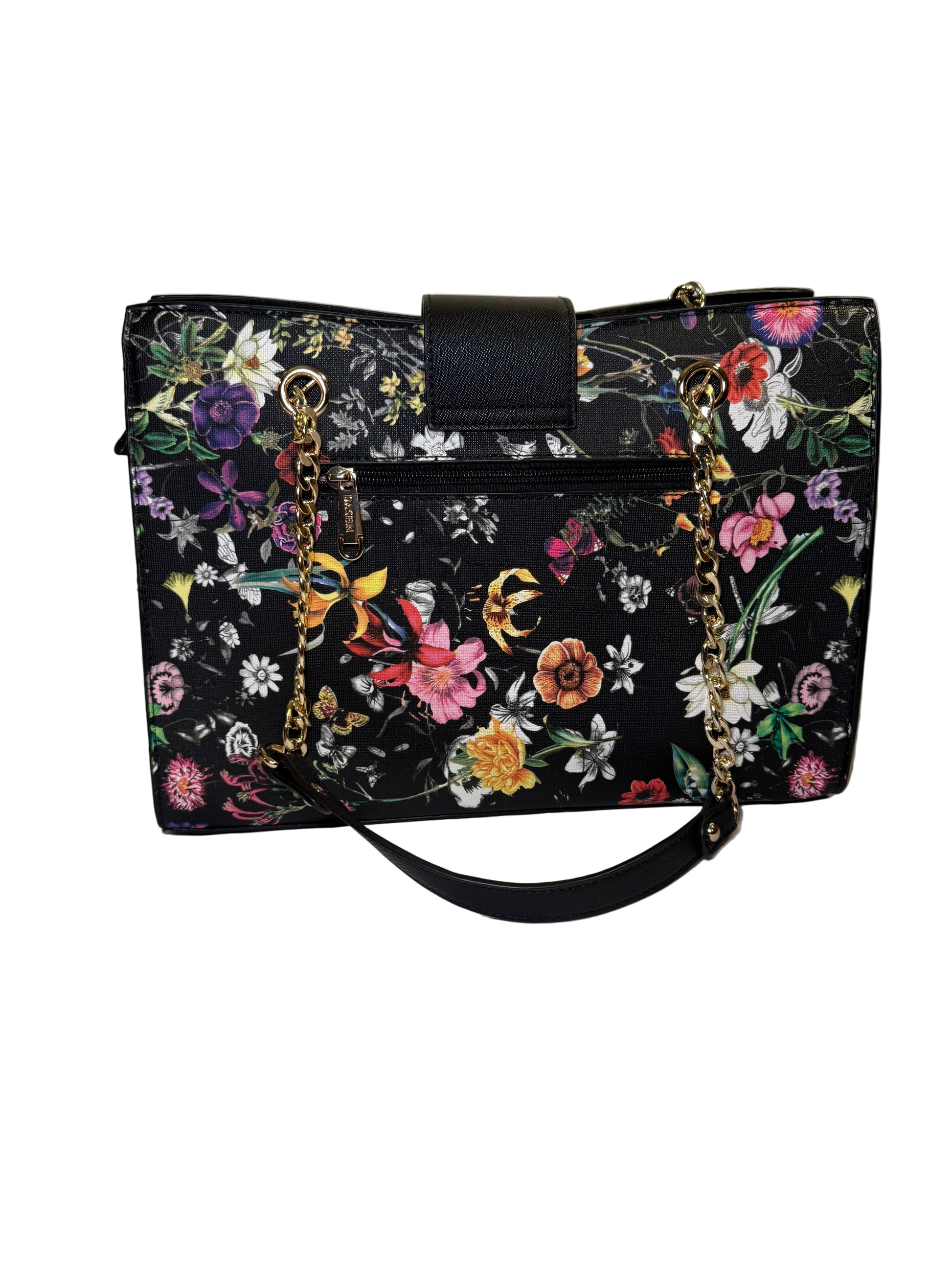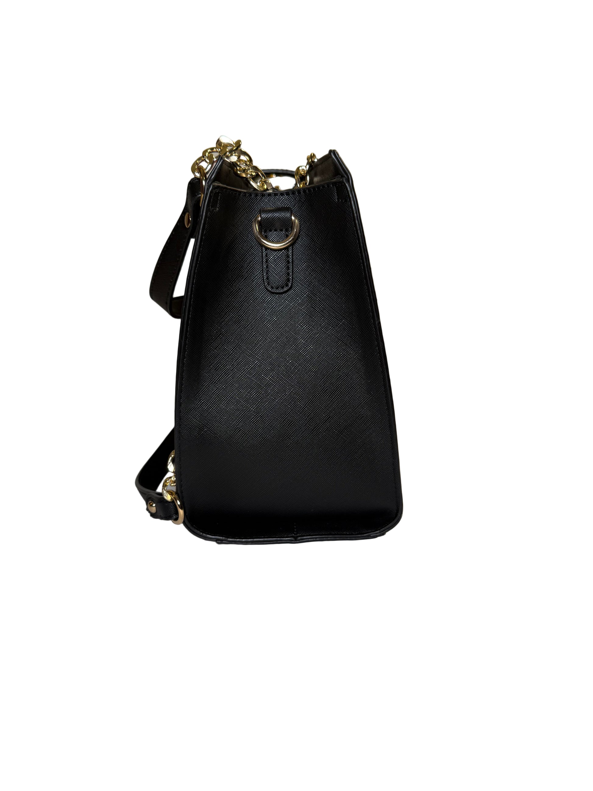 | Made of high quality Vegan Leather (pu). Detailed with high quality gold tone hardware, zippers, bottom studs. Detailed with fashion belt lock and zipper closure. Two shoulder straps (1 long removable strap & 1 leather and chain strap) Dimension: Approx. Size: 13"W x 9.5"H x 5.5"D. Can fit ipad, books, A4 files etc. Clutch Size: 9"x 6" x 1”. |
