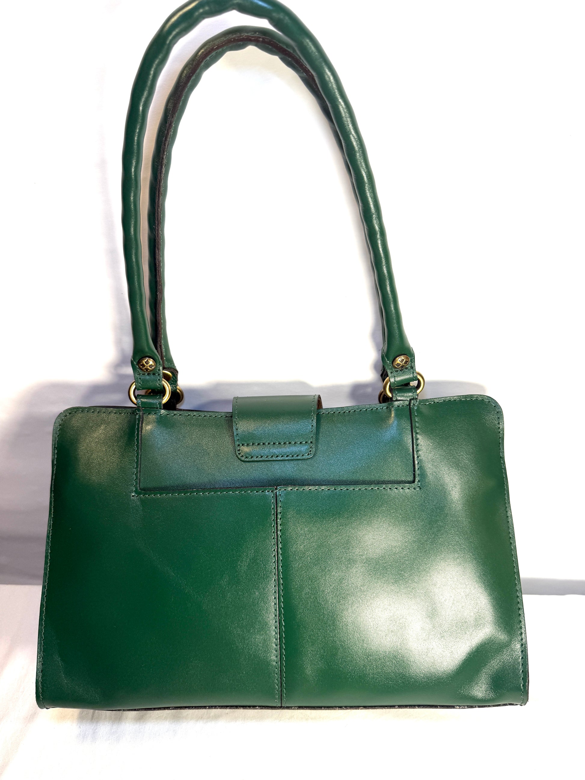 Patricia Nash Tooled Leather Green Rienzo Satchel Purse, Shoulder Bag. 100% Premium Vegan Leather Tote. Gold-tone hardware w/Bottom Studs. Dimensions: W 2.75” x D 4.25” x H 8”.