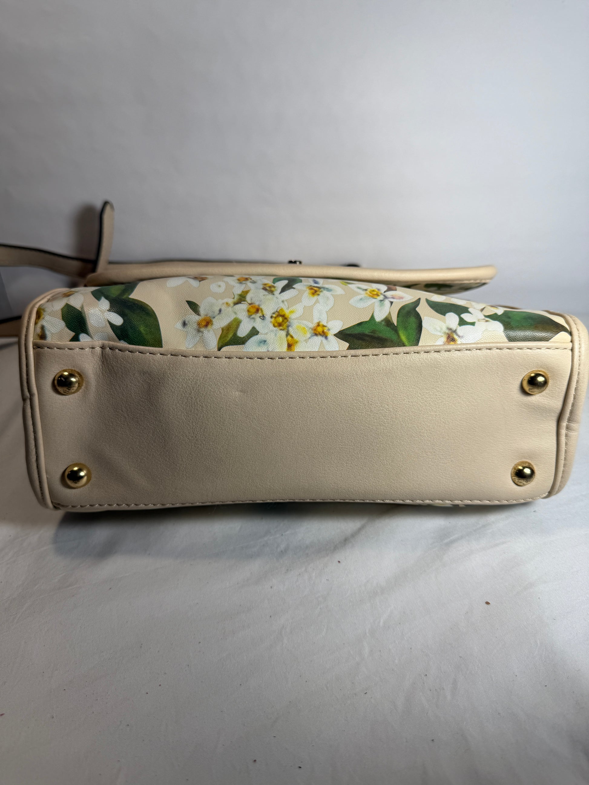 Pre-owned. Light women's small handbag with a blooming spring print.