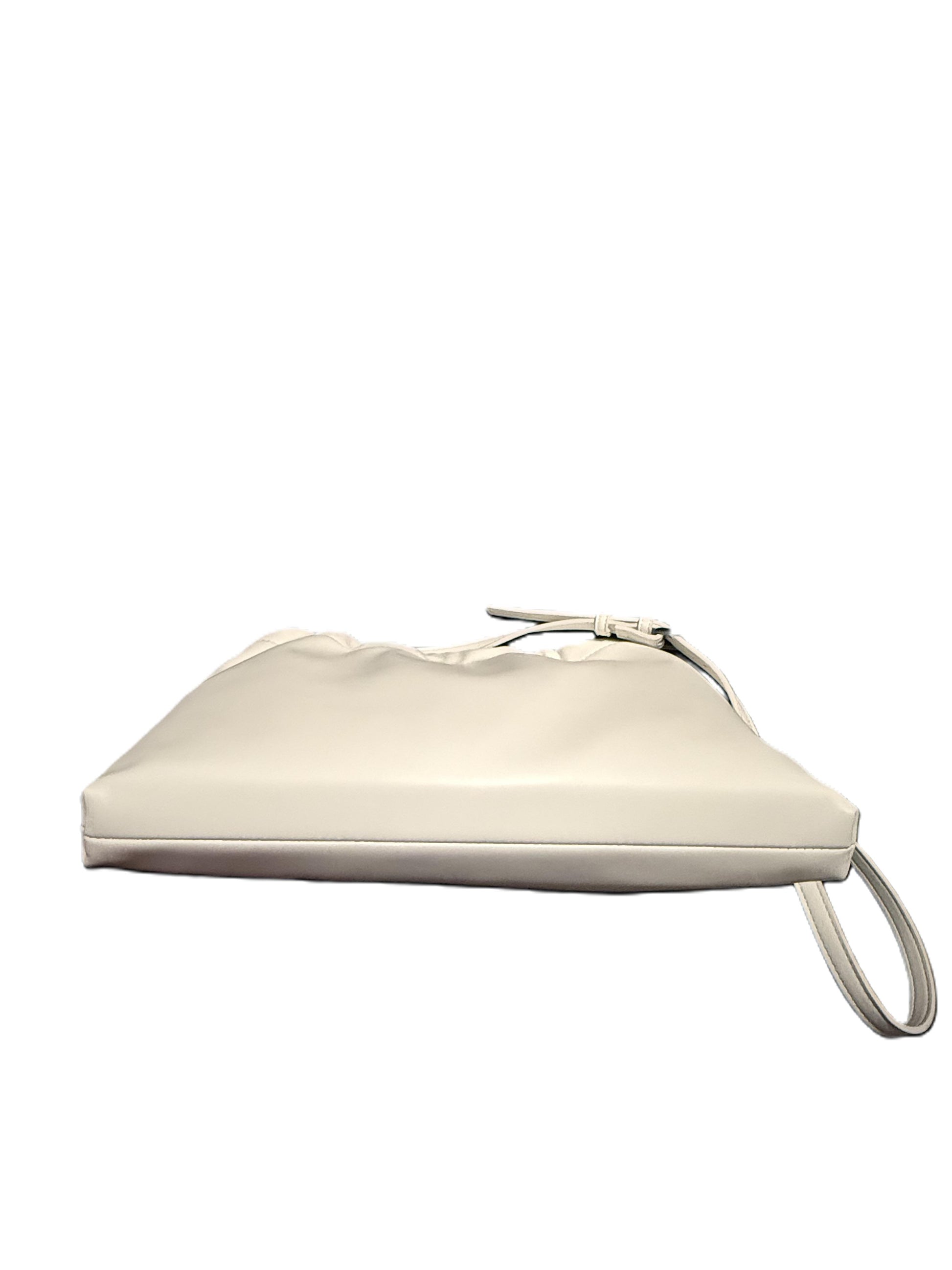 | Soft Leather Bucket Bag. Gathered drawstring closure and subtle topstitching. Material: Faux Leather. Shoulder strap. Bag is 26 cm (10.24") long, 6.5 cm (2.56") wide, and 14 cm (5.51") high |