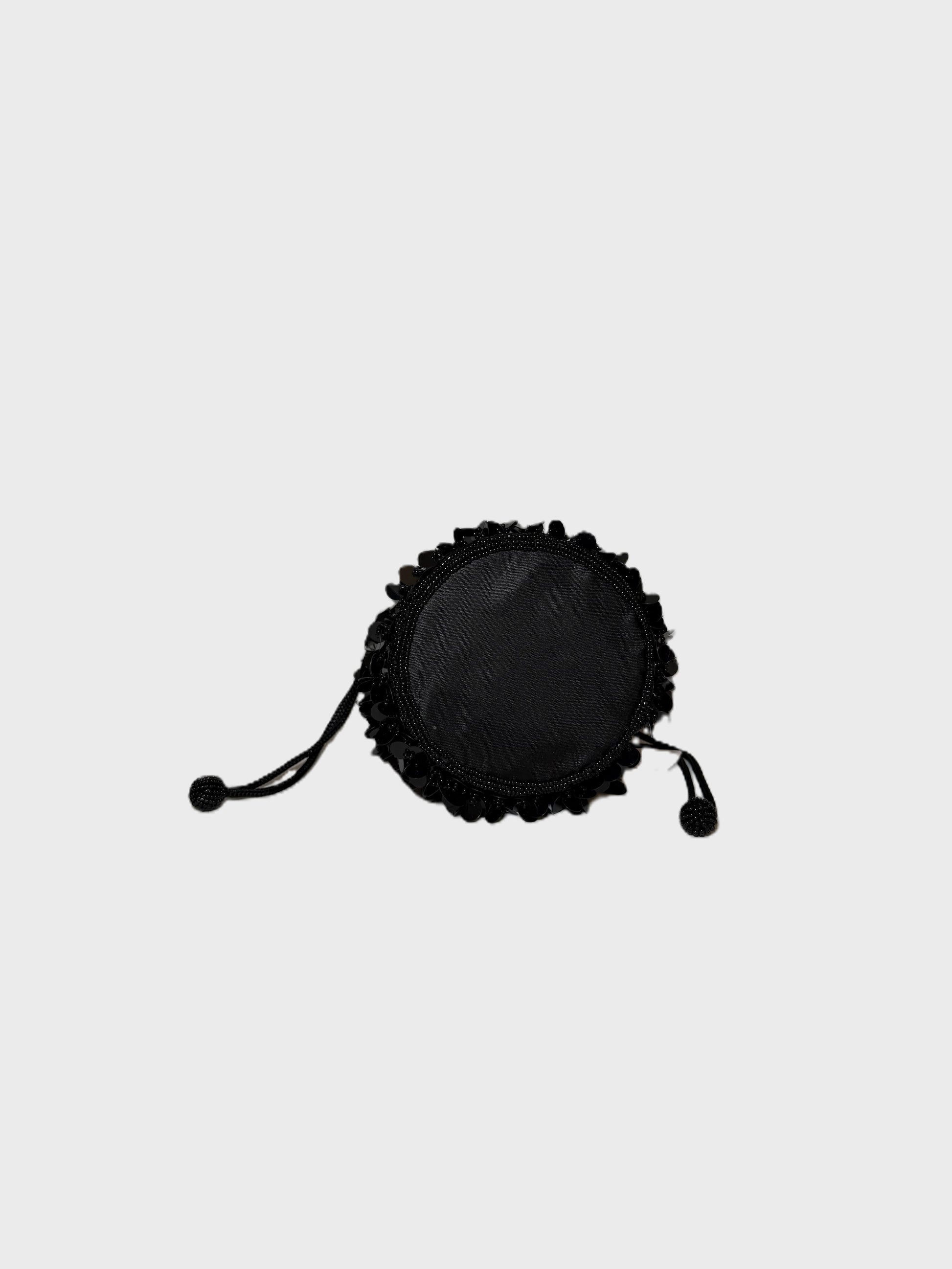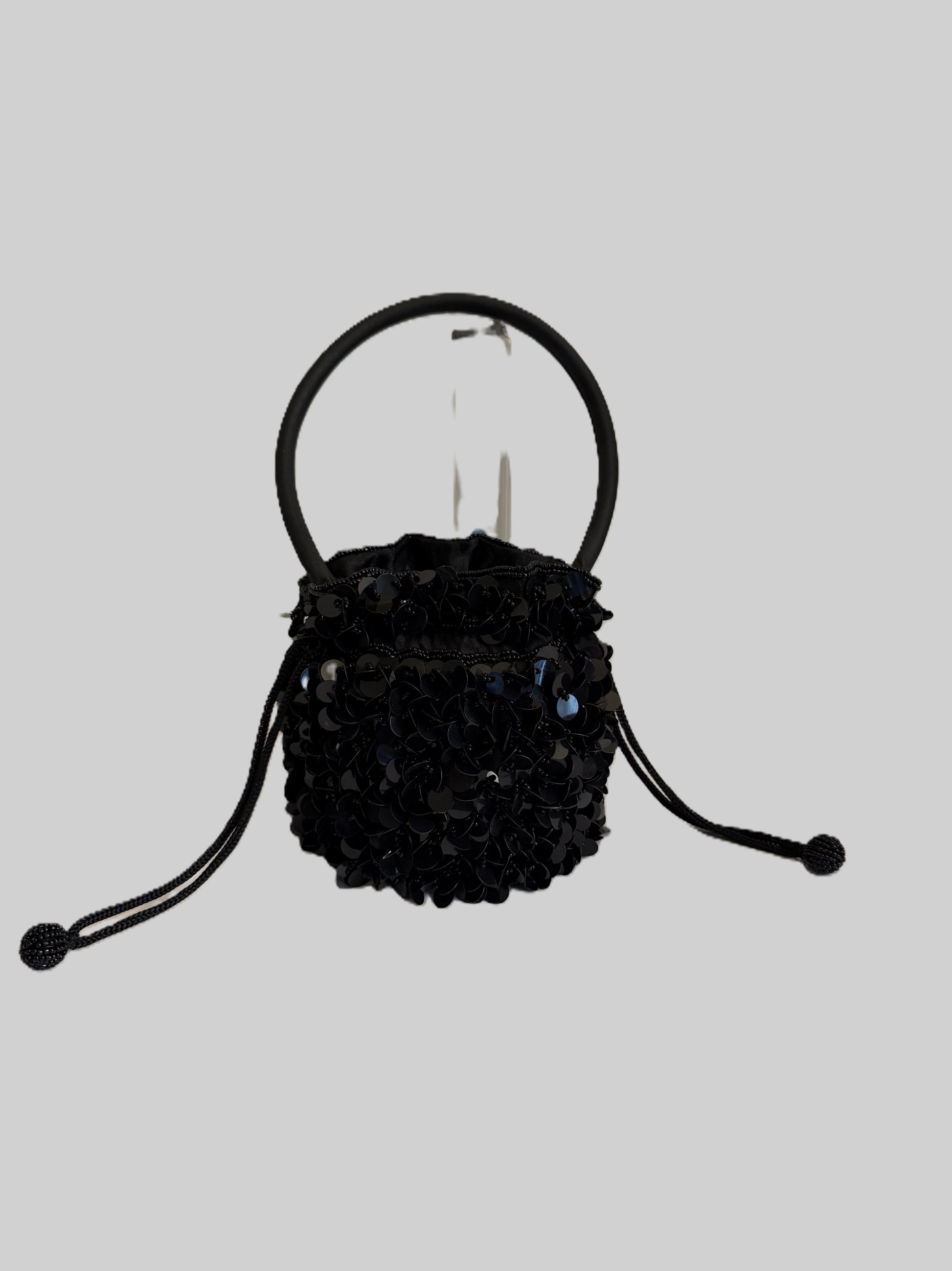 | Vintage Sequin Drawstring Purse. Sequin-topped vintage purse finished with a drawstring closure. Height: 10.5” - Length: 6” - Depth: 3” - Handle drop: 6.5” |